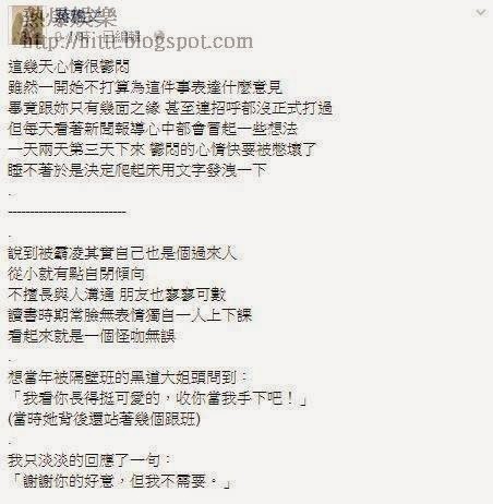 | 蔣雅文發表千字文講當年慘被校園欺凌的故事。 | next 1/1 pre |