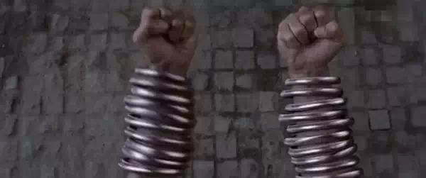 注意裁縫(趙志凌飾演)施展洪家鐵線拳時,手腕上套了10個鋼圈。