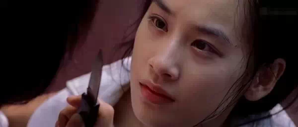阿星拿著刀威脅芳(黃聖依),注意芳臉上的頭髮,只有細細幾縷。