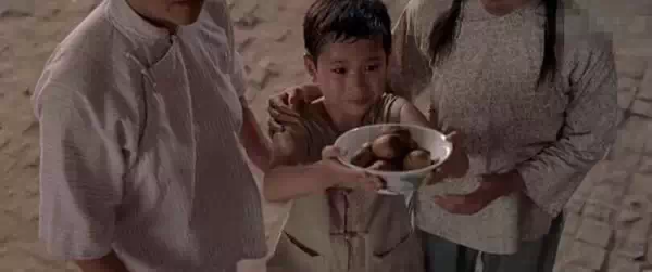 在一家三口感謝三位師傅救命之恩時,跪在地上時碗里的雞蛋是滿的。