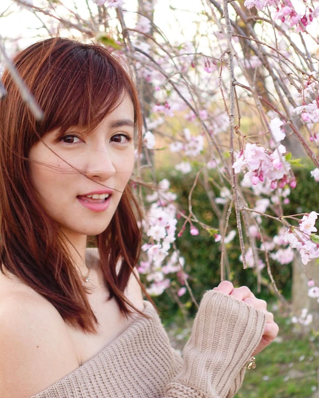 陳嘉倩在IG貼上兩張在櫻花樹下的照片,第一張笑得Sweet爆的她穿着一字肩卡其色上衣,鏡頭在「高炒」角度影,大騷誘人身材,她留言寫道︰「每年四月都會睇櫻花,不過今年用手機睇。#throwback #sakura #睇咗當去咗系列 #好想去日本」,靚花都不及人吸引,網民留言︰「嘉倩都進軍性感行列」,但女神就話︰「感性行列岩(啱)我啲」,有人問︰「件衫咩事滑左(咗)落去?」、「低處未見低」、「第一張(件衫)太低」等,但都有人話「第二張(件衫)太高啦」,非常搞笑。