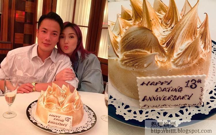 從事公關多年的丁子高,不時給老婆搞添樂趣,昨日丁子高就在社交網貼上慶拍拖13年的蛋糕照,還在fb分享與千嬅及蛋糕的合照,千嬅蹻著老公又嘟嘴,在老公面前就是一個小女人。