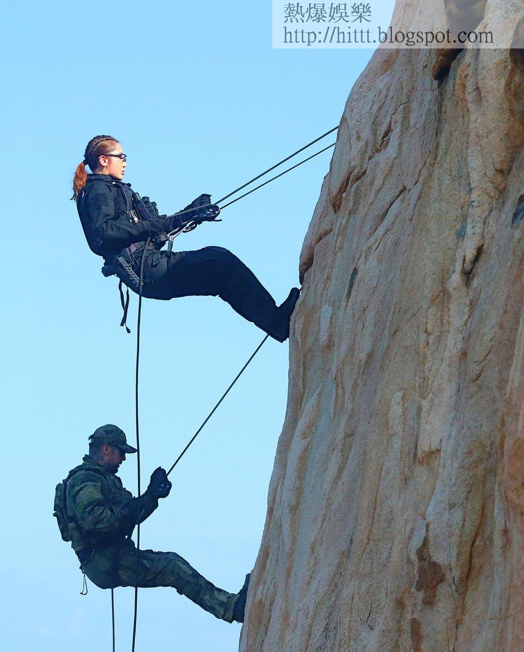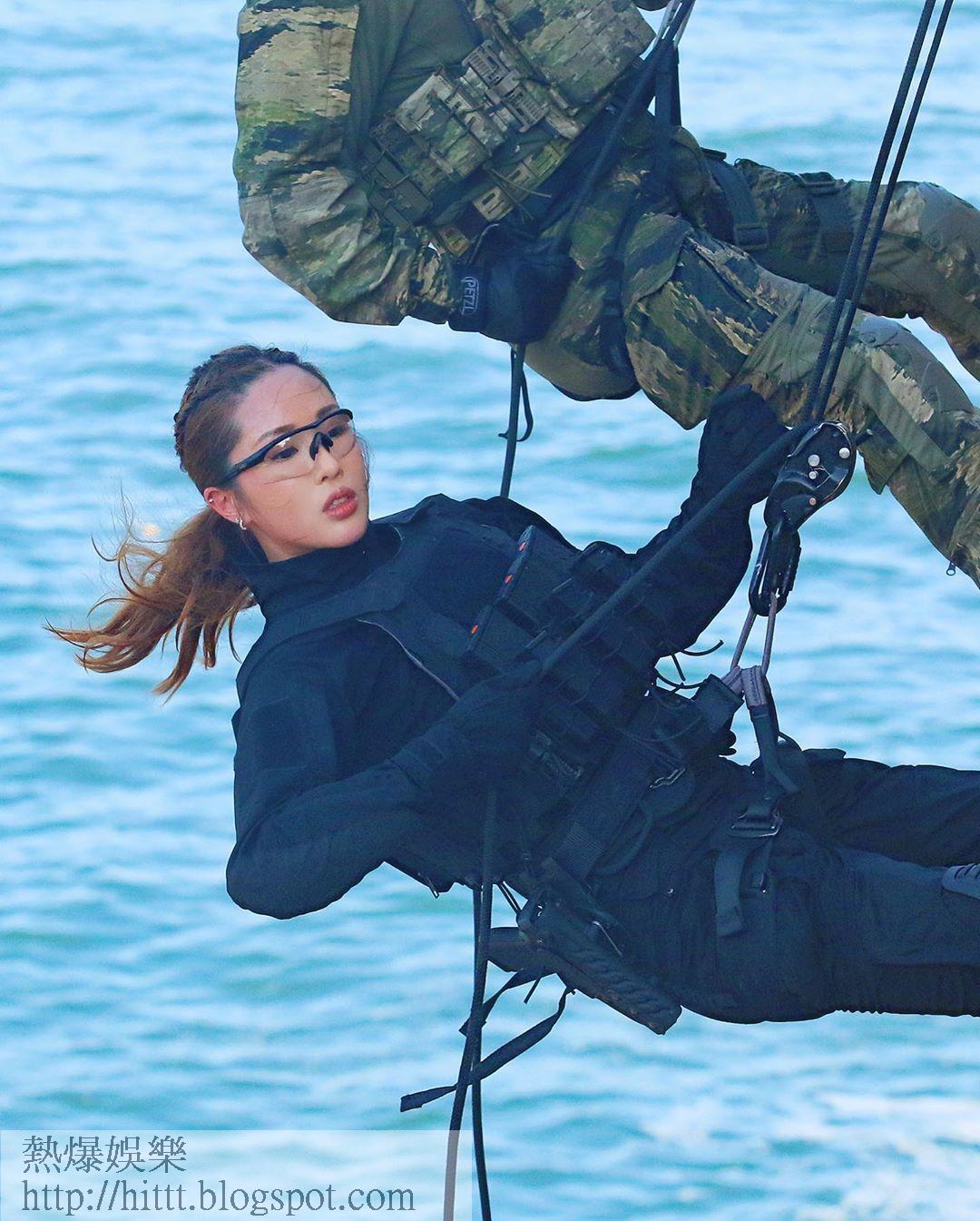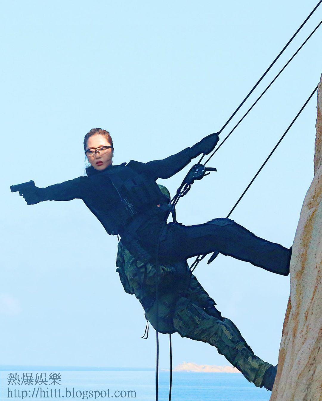 相中,Full gear上陣的Anita在教練指導下從30米高的地方游繩到地面,看到她的英姿,一眾網民都大讚:「好型」、「香港羅拉」、「你這幾張照片好像女特務」、「希望可以好快睇到你新演出」,不過都不及卸下全副武裝的造型吸引,事關Anita內裏僅穿低胸小背心!在30多度高溫下訓練完後,Anita亦即脫下厚重的衣服唞涼,仲晒出G Cup巨胸,非常養眼!