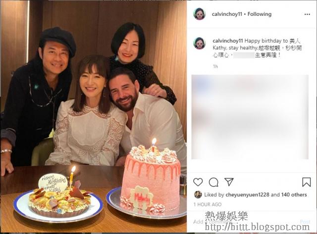 而經歷之前背妻偷食的Julien,獲老婆原諒後,在Kathy的生日會中,甜蜜地靠在老婆膊頭上合照,見Kathy亦有笑容,似乎真的已原諒老公,夫婦倆雨過天青。蔡一智則留言祝賀:「Happy birthday to 美人Kathy,stay healthy,越嚟越靚,秒秒開心順心。」