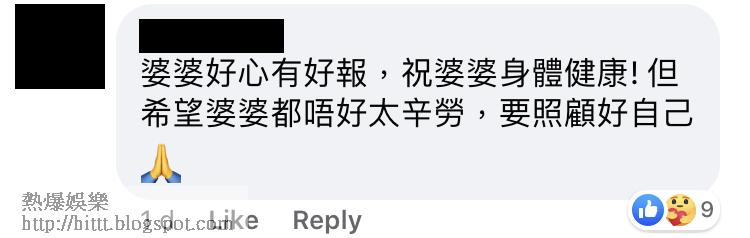 不少網民看過帖文後,雖然彼此互不相識,但均向張婆婆致敬和送上祝福,留言表示「人到無慾無求,施比受更有福!」、「感謝婆婆的無私奉獻,祝婆婆身體健康」、「希望婆婆唔好獨辛勞,要照顧爭自己」、「婆婆,你的無私教曉我哋很多……捐款不是因為擁有得多而有餘唔志在,而是因為別人有需要,我們便盡心盡力幫助」、「婆婆好嘢,好心有好報」。