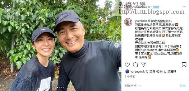 她在社交網寫道:「除咗馬拉松之外,我真係未試過晨早5點起身跑步,瞓醒果(嗰)刻落緊勁大雨,但大家都話照跑,既然大家意志咁強大,我又第一次跟跑,放飛機好似唔係咁好,所以即刻彈咗起身,天公作美,全程冇雨之餘,回程時迎面撞到發哥!係!係發哥!同佢high five咗仲講咗句早晨添,嘩!原來傳說中跑步跑山可以撞到發哥,係真嫁(㗎),多謝家怡帶我去玩」。