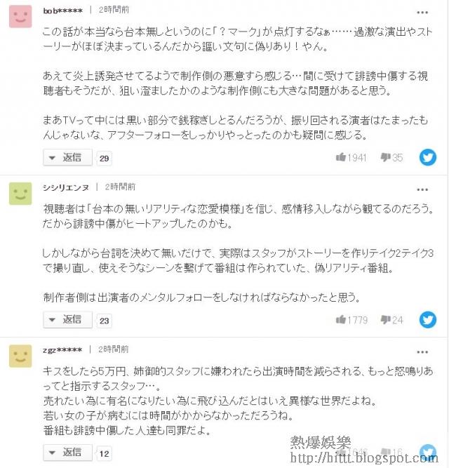 《雙層公寓》曾以津貼形式鼓勵參加者在鏡頭前接吻,每咀嘴一次就有5萬日圓(約3,600港元)獎勵,但報酬制已成過去,目前的住客為了上位,就算沒有5萬日圓也會主動獻吻,而幕後則有一名女高層,由於她掌控整個節目,有指參加者要討好對方才有更多鏡頭。大批網民連日來圍剿《雙層公寓》,擔心日後將會有第二及第三個木村花成為網絡欺凌的犧牲品。
