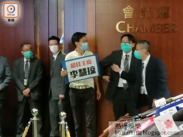 朱凱廸指梁君彥把他逐出會議廳做法可笑,表示昨日自己製作寫有「非法主席」的標語諷刺李慧琼,惟被梁指侮辱其他議員,故今早朱把標語改為「最佳主席」,卻被梁指他干預會議,不用警告立即趕走。朱對自己如何干擾會議感到不解,又稱會等待梁再作裁決,若梁不作出新的裁決,今日將會好戲連場,又指梁君彥向公眾揭示立法會有多荒謬。