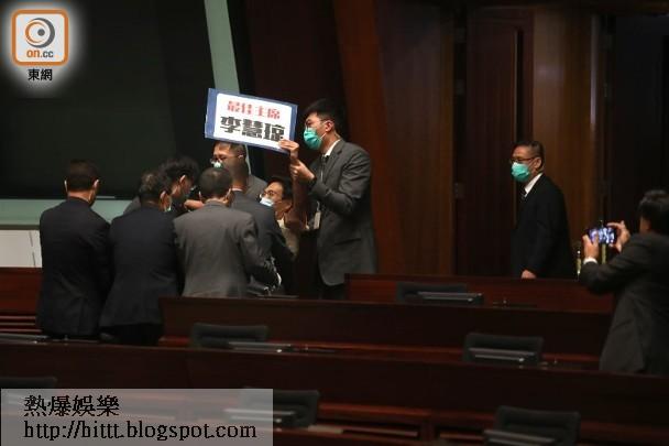 立法會今日(28日)續辯論《國歌條例草案》,但會議一波三折,主席梁君彥先後3次暫停會議,並將議員朱凱廸和陳志全逐離場。許智峯則在其後衝出座位打算拋擲物品,但被保安截停並帶走。