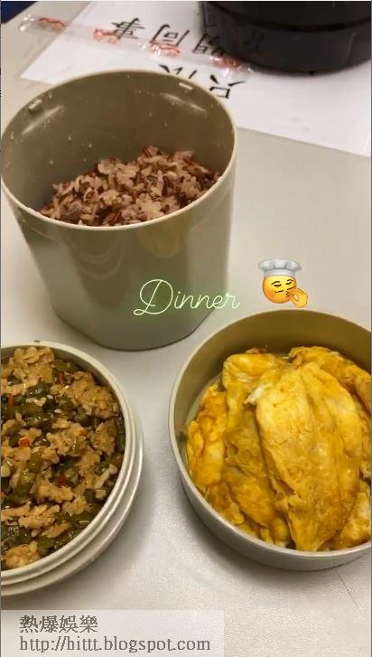 【飽唔飽㗎】全部健康嘢 陳山聰晒老婆愛心飯盒愛心飯盒好吸引。就嚟做爸爸嘅陳山聰忙開工賺奶粉錢,陳太雖然大住個肚,但仍然對老公照顧周到,煮好晚餐同宵夜畀老公帶返公司食,夠鐘開餐,山聰好似人哋拍開箱文咁,影低今晚食乜餸,佢好興奮咁話,「有泰式素肉炒豆角,菜甫蛋。」同埋一大碗糙米飯,而宵夜就簡單啲,就係三隻烚蛋同一個迷你蕃薯,全部健康嘢,不過份量好似好少咁,會唔會打個乞嚏就冇咗?山聰的晚餐。 山聰的宵夜。