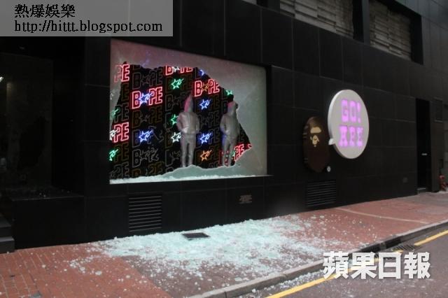 大約下午5時許,《蘋果》記者發現兩店的櫥窗已遭「裝修」,現場只見零星途人,當中I.T的正門櫥窗變滿地玻璃,而貨品就完好無缺,店內未有工作人員及未有開燈,而店內地下見到有磚頭,疑是破壞人士以飛磚打爛櫥窗,而幾步之隔轉角位的A Bathing Ape亦遇到類似情況,店舖的櫥窗粉碎,玻璃散到行人路上,該店亦沒有工作人員在裏面,而店內的公仔就被搬了出舖,放置在行人路及馬路上,現場沒有太多遊行人士,只得零碎路過的途人。《蘋果》就「裝修」事件聯絡過I.T的企業傳訊部,對方表示沒有回應。