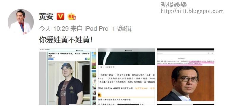 有網民其後在facebook問秋生:「呀黃安稱你為『黃家人』,小粉紅都是腦袋有問題」,秋生回覆:「我根本不姓黃」,並指自己正名是「Anthony Perry」。不過黃安今日繼續開火,在微博留言「你愛姓黃不姓黃」,明顯是寸黃秋生。