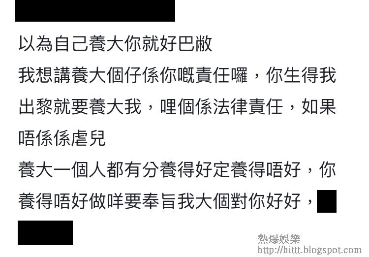 其後,他更斥指父母不公平的要求,指兩人經濟條件不佳,「明知窮仲生三件」,加上「生著兩件廢青,得我一件出人頭地」,意指他還有另外兩名兄弟或姊妹要照顧。在文中他又指出,自小家中便沒提供太多資源,生活上的費用,包括學費、生活費等都要自己付,更說一切靠自己讀書來獲取。樓主最後更說:「出咗身咁多年我想脫貧喇,點解要嚟拖我後腿」、「家用我都冇畀少喇,再畀多啲同幫你養埋兩件廢青冇分別」、「享福?兩公婆供樓你享福?」句句都顯示樓主多年在家中的壓力及無奈。
