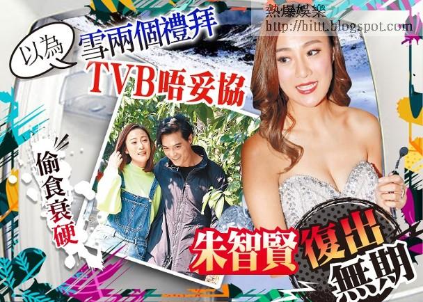 前港姐朱智賢(朱朱)搭上有婦之夫黎振燁,上月被踢爆駕車到山邊「偷食」心形蛋糕!不倫戀曝光後,朱朱雖未被男友謝東閔嫌棄,更力撐一齊開記者會,灑淚認錯,但形象依然直插谷底,工作即被煞停。其中她主持的《東張西望》,上頭落「柯打」要她休息兩星期,觀察外界反應,如醜聞未再升溫,才安排她回歸幕前。