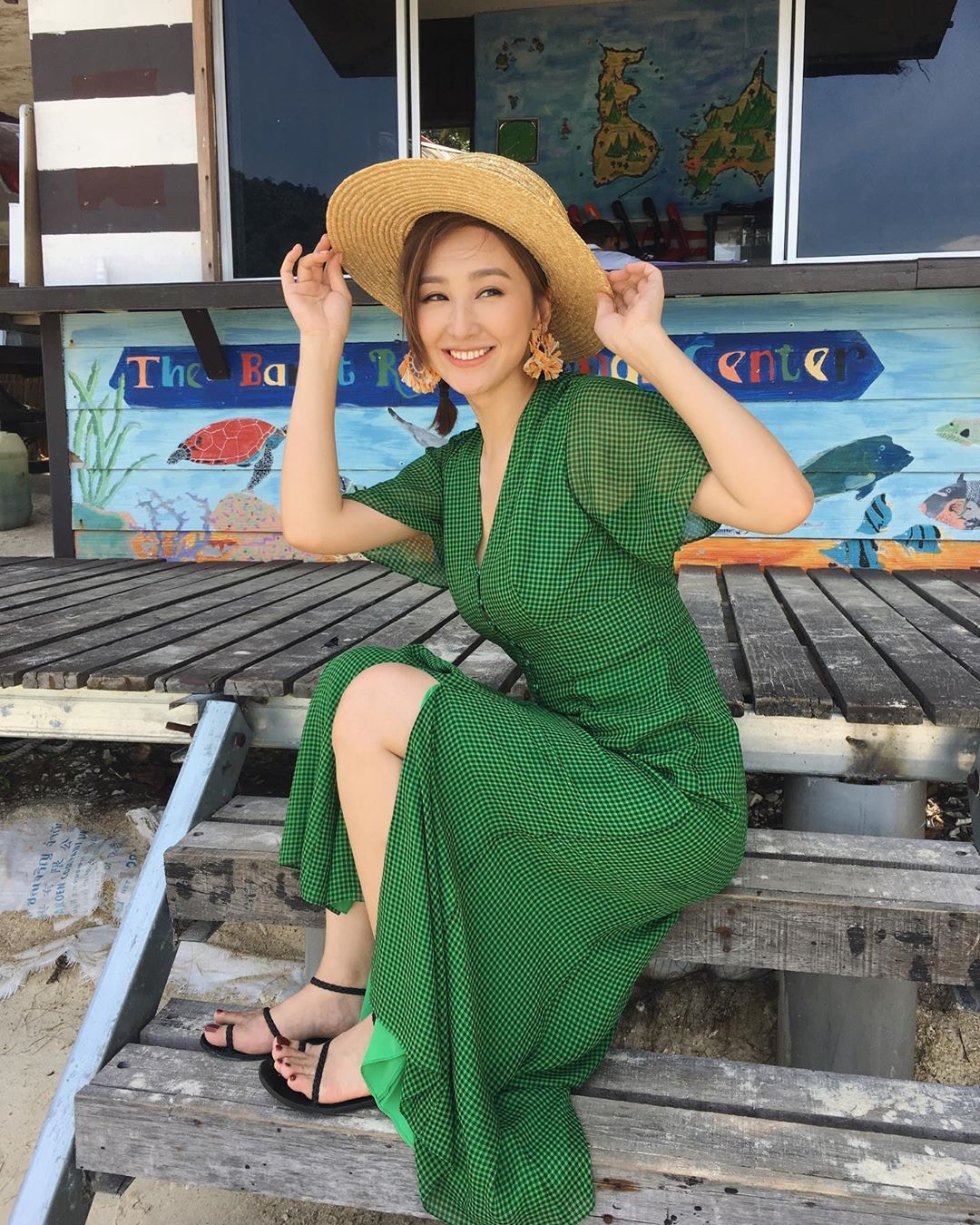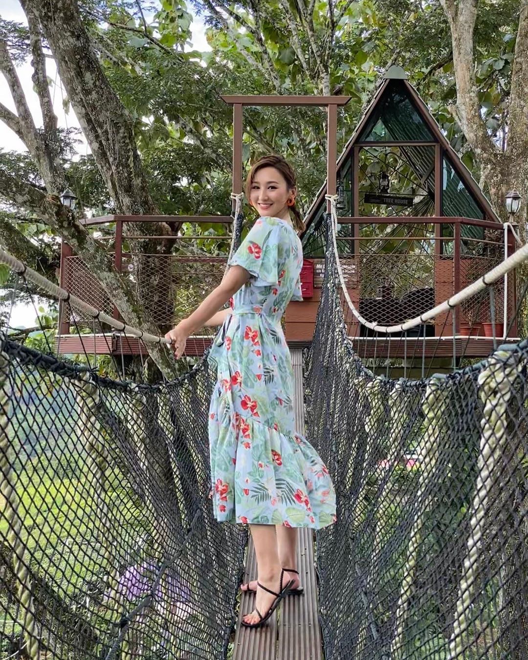 夏天是印花連身裙與涼鞋的季節,高海寧喜歡以一對黑色幼帶涼鞋搭配色彩鮮艷的連身裙,充滿清爽的夏日氣息。(IG@sammkoling)