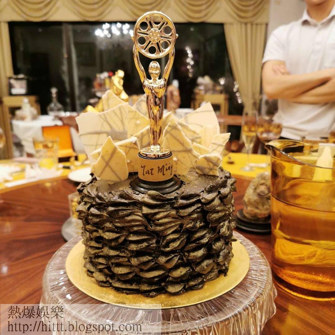 獎座未到手,楊玉梅與朋友為張達明安排小金人蛋糕慶祝。