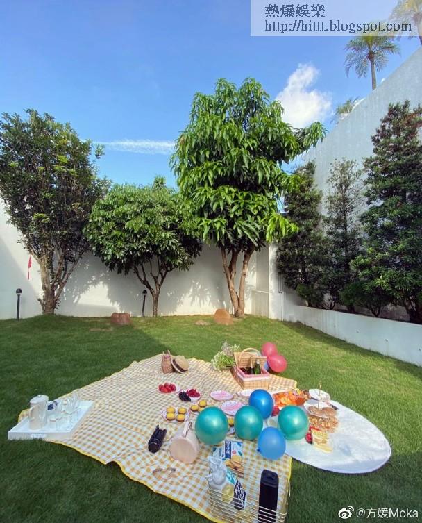此外,她亦上載了和囡囡玩積木的相片,並晒出V字手勢,看來玩得相當投入。而最大亮點是她與好友在一個豪華後花園野餐,她們席地而坐,現場安排了美食和飲品之餘,還有氣球作布置,加上現場有真樹令環境相當貼近大自然,甚懂享受。