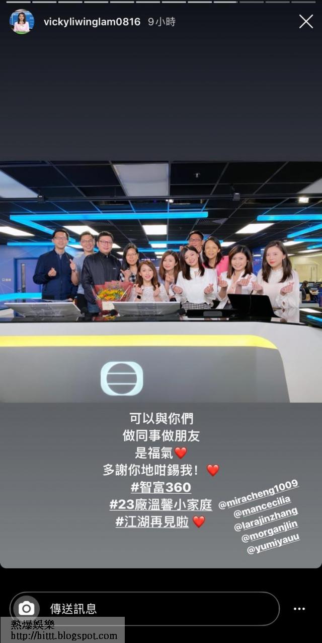 雖然公司無情,幸好同事有情,在離職前夕,Vicky亦有在IG Story貼出與同事farewell的相片,她還說:「可以與你們做同事做朋友,是福氣,多謝你哋咁錫我!#江湖再見」