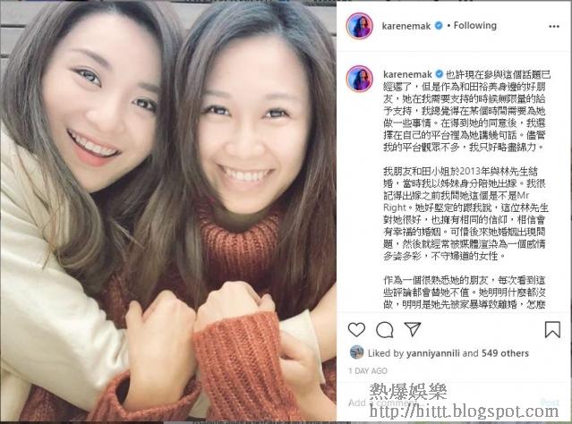 「出軌!偷食!當時這些新聞鋪天蓋地,全靠前夫林恩浩先生及他幾個朋友聯群結檔一齊打給報館,偽造假消息,假故事,說我花了他很多錢,對方當時每個月只有12000元人工,婚後所有東西AA制,我繼續獨自供養我媽媽,我多次要求離婚,是因為我多次被家暴,對方卻不斷在恐嚇我,不要跟傳媒說太多關於他的事,因會影響他將來的聲譽,怕影響升職的問題,如果我多話一句,他絕不簽紙離婚。」