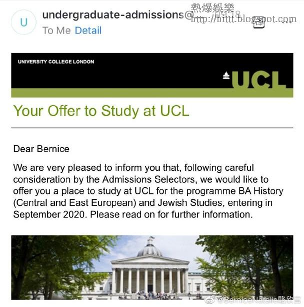 而佢仲喺社交網報喜,上載兩張電郵截圖,原來兩間英國著名學府倫敦大學學院(UCL)及倫敦政治經濟學院(LSE)都向佢提供學位,唔只樣靚讀書仲咁叻,認真巴閉呀!