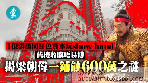 不過,梁朝偉過去十二年,在物業市場上戰績彪炳,主要投資在港島一帶,淨賺過億。13年賣一個中環鋪,淨賺5000萬,變相「零成本」換入三個土瓜灣鋪位。有一億籌碼在手,故600萬輸得起。