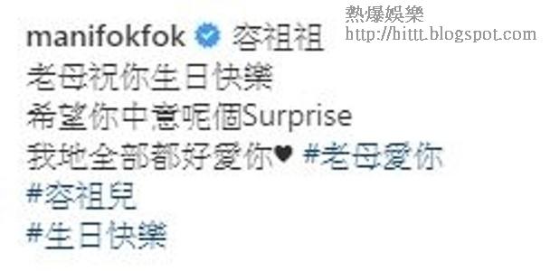 經理人霍汶希(Mani)喺社交網上載「龍虎豹」合照,留言:「容祖祖,老母祝你生日快樂,希望你中意呢個Surprise,我哋全部都好愛你♥️ #老母愛你」唔少網民都祝佢生日快樂,而着上深色衫嘅阿嬌明顯瘦咗唔少,但面色唔錯,大家都好開心終於見到佢哋一齊山現!