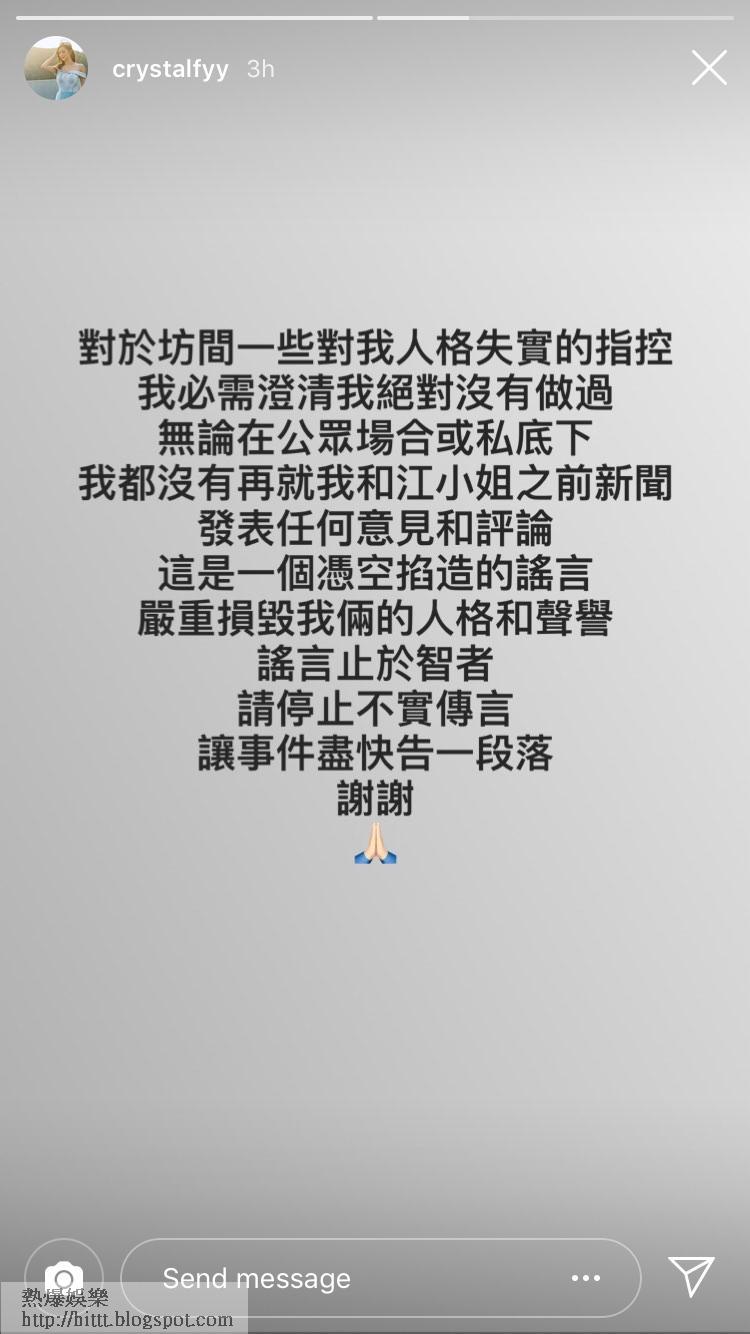 對此,江嘉敏回覆傳媒時直認獲盈盈邀去船P,又坦承已從幕前幕後口中聽聞盈盈唱她「扯皮條」,但沒有親耳聽到當事人咁講,最後則以「唔想愈描愈黑」拒絕再回應;而盈盈就堅稱:「好肯定自己冇講過!」隨後,盈盈又於今日凌晨在IG Story回應事件,她寫道:「對於坊間一些對我人格失實的指控,我必需澄清我絕對沒有做過,無論在公眾場合或私底下,我都沒有再就我和江小姐之前新聞發表任何意見和評論,這是一個憑空捏造的謠言,嚴重損毀我倆的人格和聲譽,謠言止於智者,請停止不實傳言,讓事件盡快告一段落,謝謝。」至於另一當事人「江小姐」則於社交網留言:「因為認真,所以有感覺。因為緊張,所以會生氣。因為在乎,所以會失望。#完 #好鍾意紮髻因為望落瘦啲」究竟江嘉敏對邊個咁失望呢?