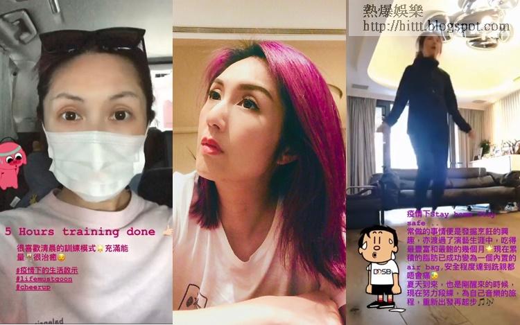 上月底,千嬅在微博發呆萌自拍照,自爆吃太多了要努力鍛練。講得出做得到的千嬅,今日在ig story貼上清晨5點半已在做早操,做足5粒鐘後稱「很喜歡清晨的訓練模式,充滿能量,很治癒」。