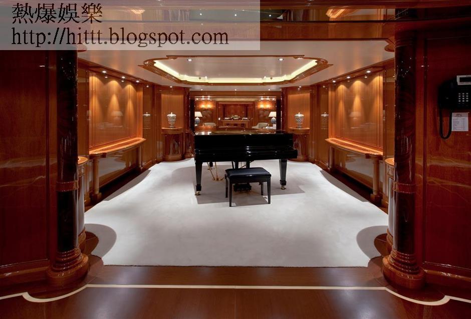 全船分為五層,有電梯方便上落,駕駛艙甲板設有按摩浴池、梳化、電影院和健身室,下一層的主甲板,設有兩個休息區,酒吧旁置大鋼琴,以及一張可容納十八人的大餐枱,方便船主招呼賓客。