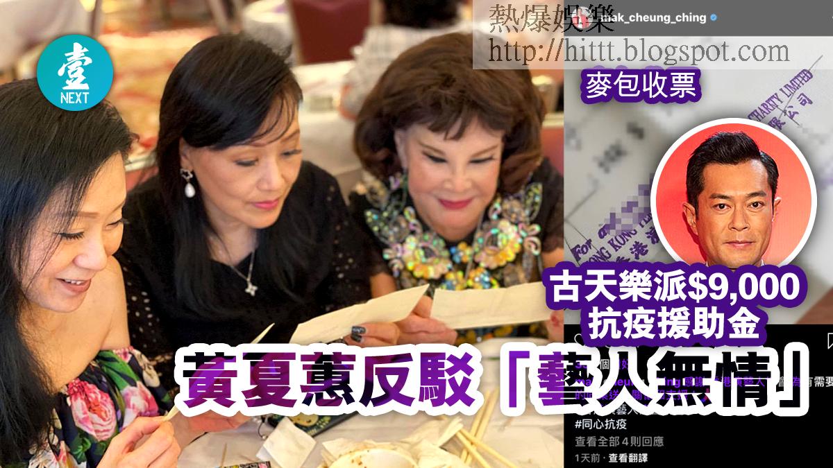 而黃夏蕙、麥長青等演藝工作者,日前陸續收到援助金,黃夏蕙更在facebook揚言「愛死」古天樂,「寒天飲冷水,點滴在心頭!一直俾人話「藝人無情」!呢句說話錯晒!我尋日同一班好姊妹(魏秋華和徐寶鳳)去香港演藝人協會,領取咗一筆抗疫基金,每人$9000 ,呢份心意,係用言語表達唔到,只可以喺內心深處感受到,呢一杯暖水嘅溫暖。古天樂,我哋一齊愛死你!」。