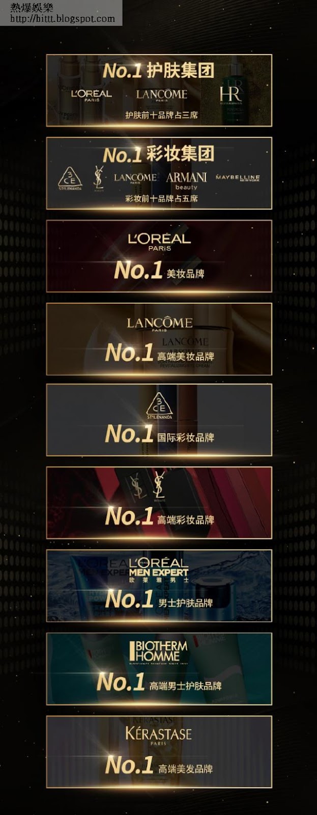 法國美妝集團L’Oréal日前發佈在「天貓618」購物節的戰績,在旗下護膚與彩妝品牌帶動下,成功蟬聯銷量最好的美妝集團。其中 L’Oréal、Lancôme、Helena Rubinstein佔前十大護膚品牌榜的三席,而集團旗下的彩妝品牌也佔彩妝榜的一半 ,包括YSL、3CE及Armani和 Maybelline等,而第一位的美妝及高端彩妝品牌分別是L’Oréal及Lancôme當選,賺得盤滿缽滿。