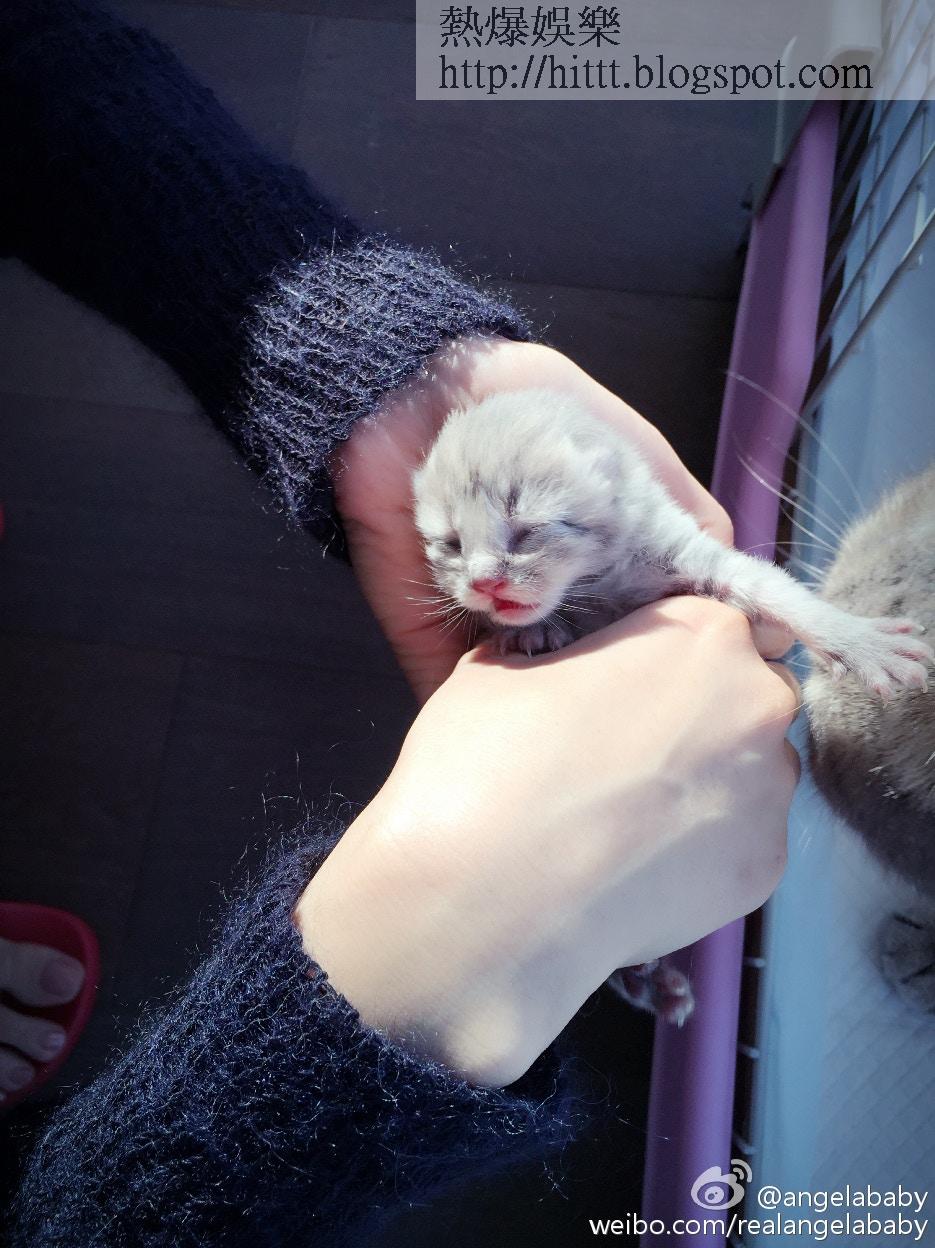 媽媽真偉大!小貓B剛出生時,只有手掌般大小。(微博@angelababy)