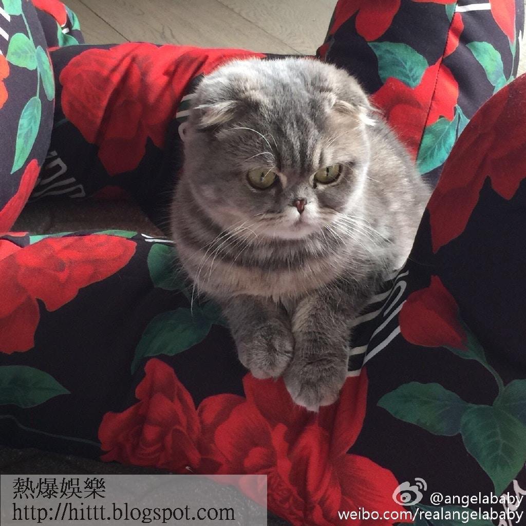 Angelababy總是稱家中貓咪為網紅,認為每次有牠出現,風頭都會被搶去。(微博@angelababy)