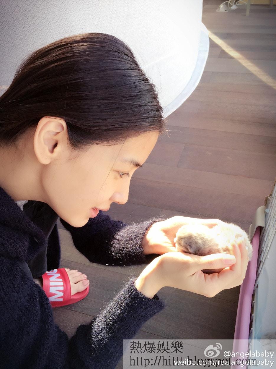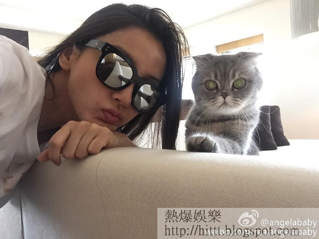 只要不用拍劇,就與愛貓寸步不離。(微博@angelababy)