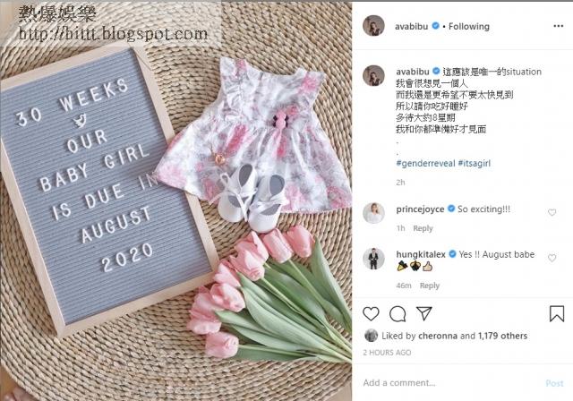 兩僑今日終於在IG貼出一張粉紅色花裙相,一對小白鞋,還有鬱金香,透露今胎是「Baby Girl」,她留言:「這應該是唯一的situation,我會很想見一個人,而我還是更希望不要太快見到,所以請你吃好睡好,多待大約8星期,我和你都準備好才見面。」