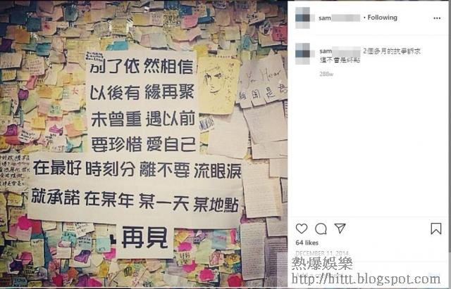 Sam並非現時新聞報道上見到的冷血動物,相信他也曾經歷內心爭扎,是超級黃的一族。原來他早於2014年已關心雨傘運動,眼前畫面更令他失望,其中一個貼文上載一張黑白照片,一個穿上制服的警察扶着另一個受傷便裝男人,Sam寫道:「為此政權感到可恥 對警察執法亦唔再抱有一絲希望 不會再考慮重新加入警隊。」原來Sam有着大部份香港人的步伐。