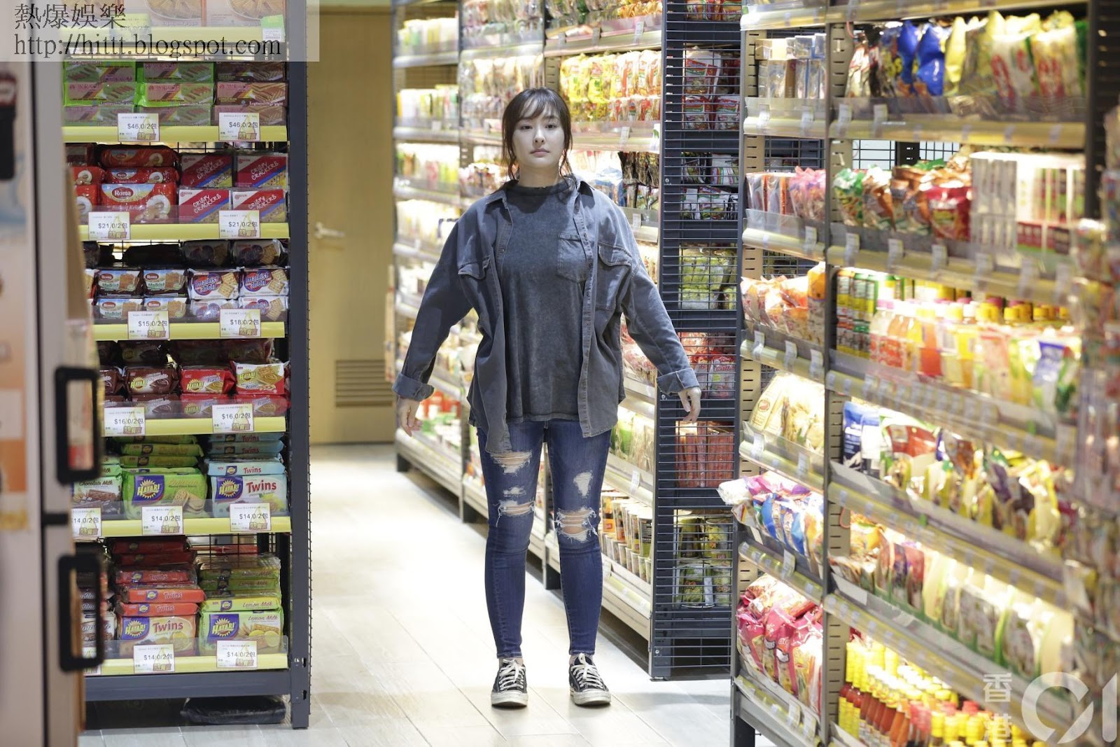化身超市阿姐!(陳順禎攝)