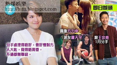 真正拍過拖,要數兩年半前,被拍到跟王宗堯行街食飯,男方早前被拘捕,被控一項進入或逗留在會議廳範圍罪,直至今年初,兩人分手。分手後,她一個人到尼泊爾旅行,回港後留言:「其實整個旅程最大最大的得着是令人學會放下。說再見很不容易。2020年還是決定了自己一個人過生活。謝謝互相陪伴的日子,希望大家都可以變得更好。」而王宗堯則被拍到跟花店長髮老闆娘行街約會。