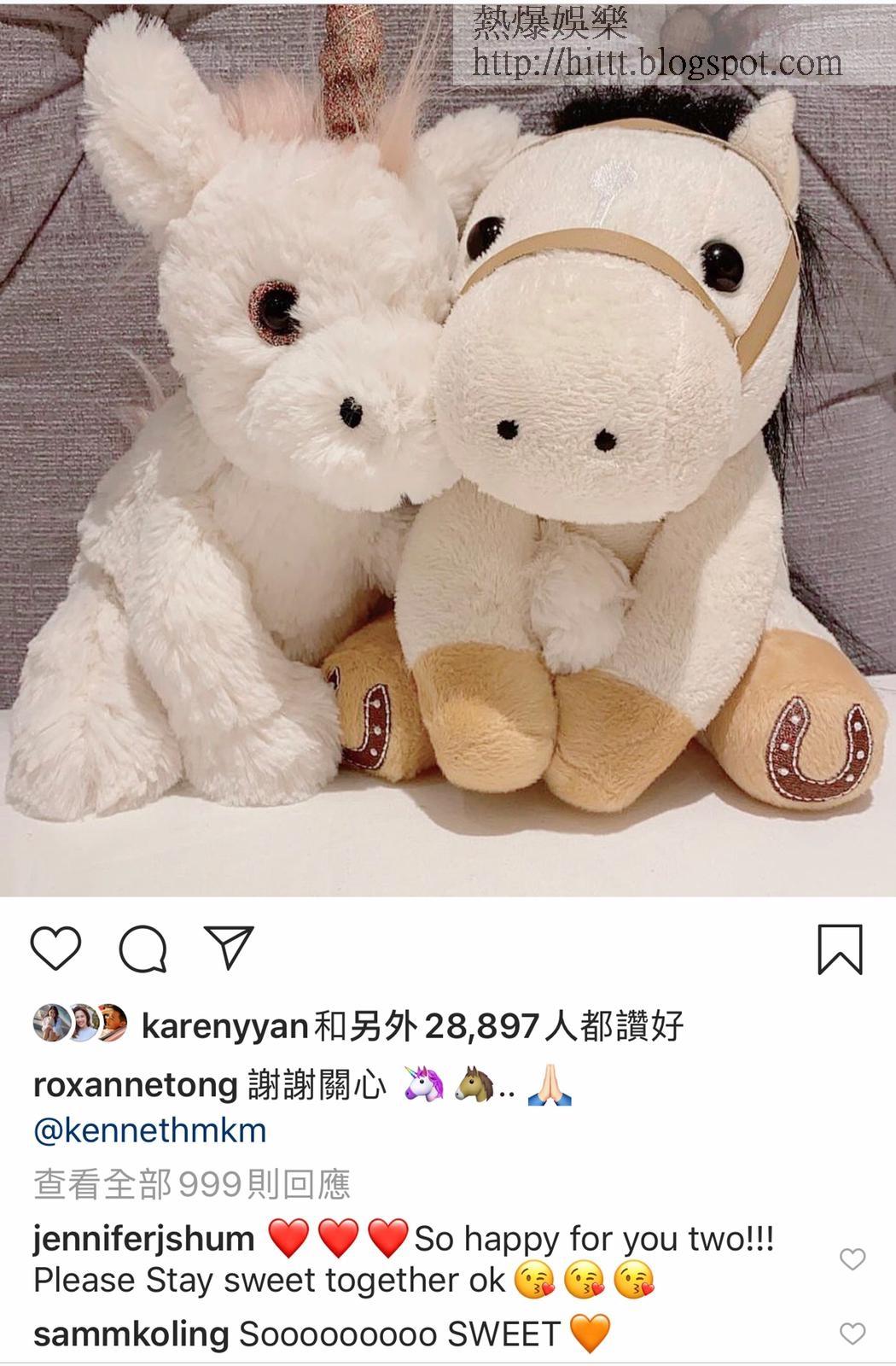 - 二人於凌晨在社交網放上恩愛公仔相,大方認愛。不少圈中人包括剛失戀的高海寧留言祝福。