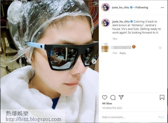 上午為亡父進行完三七打齋後,超儀隨即到朋友開設、位於中環怡和大廈的髮型屋染髮。她於IG上post出兩張於髮型屋內正在染髮的相片,表示自己正在將頭髮染回深啡色,又指此舉是為未來的工作做足準備,超儀於post內留言說:「Getting ready to work again! So looking forward to it.」(準備好再次開工!非常期待!)之後又於IG的限時動態內,上載多條早前拍攝雜誌訪問時,拍下的花絮片段,看來超儀已漸漸走出喪父之痛,慢慢回復拍攝工作。
