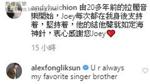 許志安對上一次發文就係為偷食道歉,而尋日佢就喺社交網上載一張喺《Chill Club》唱歌嘅相,留言多謝一個人,而呢個人唔係老婆或者家人,佢話:「由20多年前的拉闊音樂開始,Joey每次都在我身後支持着,堅持着,他的結他聲就如定海神針,衷心感謝您Joey❤️」Joey就係「Joey Tang」鄧建明喇!
