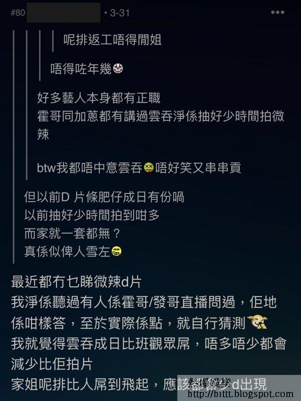 假返工 真雪藏? 微辣雲吞停拍片1年 網民:微辣雲吞憑咩可以一腳踏兩船?