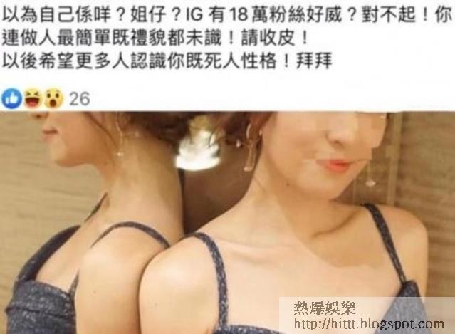 大台前主播陳嘉倩離巢後,火速成為KOL,在IG和facebook講飲講食講扮靚,輕易吸納過10萬fans,廣告代言接到手軟,不過未知是否人紅惹是非,日前她就被網民暗指臭寸扮大牌,連做人最簡單禮貌都未識。此帖吸引不少網民踴躍留言,有聲稱和陳嘉倩合作過的人,指她黑面遲到,亦有人指她扮上菜,實則貪慕虛榮濫收兵。陳嘉倩昨日就此事回應《蘋果》,指自己對事件感到莫明其妙,又說不是事實不回應。