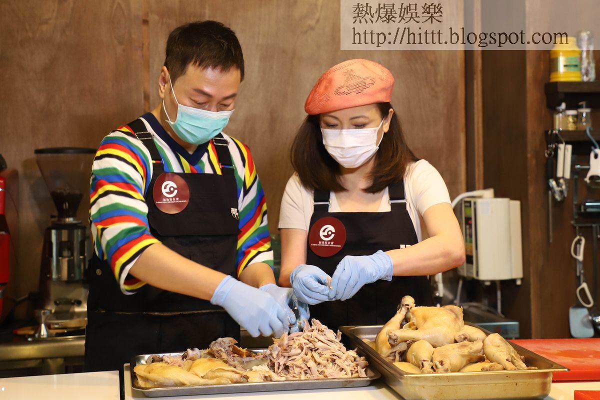 鄧萃雯、黎耀祥和義工一起合力完成100個愛心飯盒。