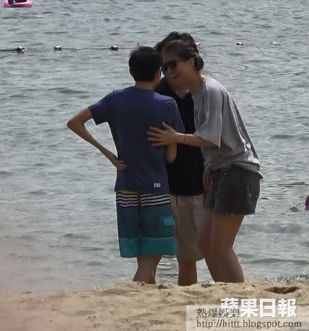 昨日端午節,Chilam一家三口總動員外出,《蘋果》在淺水灣沙灘見到他們,當時大概下午3時許,他們均穿上T-shirt襯短褲,及踢住人字拖的假日裝束,兩公婆更戴了黑超,他們在商場對面的街道泊車後,就行去沙灘方向。記者見到Chilam全程搭住囝囝膊頭好好傾,沒有理會靚靚,而靚靚心情亦表現興奮,邊行邊輕輕跳,相當有少女心。他們3人走到水邊,以為他們想去應節浸龍舟水,原來他們想一家三口影合照,由Chilam揸機selfie,影完後,靚靚即與魔童傾偈,之後3人再行回商場方向。