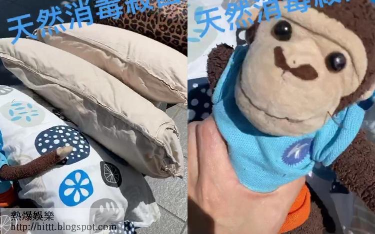 栢芝好享受做家務樂趣。圖中曬晾嘅馬騮布公仔跟咗兒子十年。