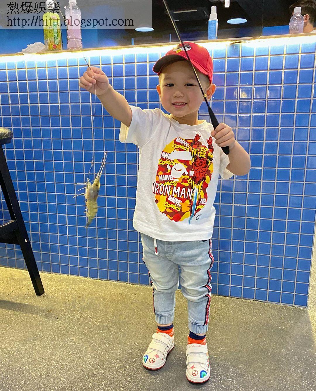 現年40歲的胡杏兒去年7月為老公李乘德(Phil)誕下二子李奕霖(Ryan)後,一直專心湊仔做全職媽咪,至早前終於「復出」參演伍健雄監製的ViuTV外判製作劇集《熟女強人》,上月中煞科的她就於社交網晒舉V照,宣佈要回歸家庭湊仔了!由於疫情稍為緩和,夫婦倆近日都不時帶兩歲大仔李奕霆(Brendan)去郊外放電,繼之前去有機農場、餵草泥馬後,昨日趁天氣熱,他們便帶Brendan去觀塘室內釣蝦場,體驗釣大頭蝦,Phil於IG爆粗留言:「Brendan Lee is our very own shrimping expert. Yit Tin Jai Diao Ha Hau L*n Ser Lee.(Brendan係我哋嘅釣蝦專家。奕霆仔釣蝦好X犀利。)」相中,戴上口罩的Brendan坐在池邊一連認真地睇實支魚竿,好快便成功釣到4隻大頭蝦,仲同媽咪好威水地晒住戰績影合照,睇到咁大隻蝦,兩母子都擘大口嘩嘩聲!