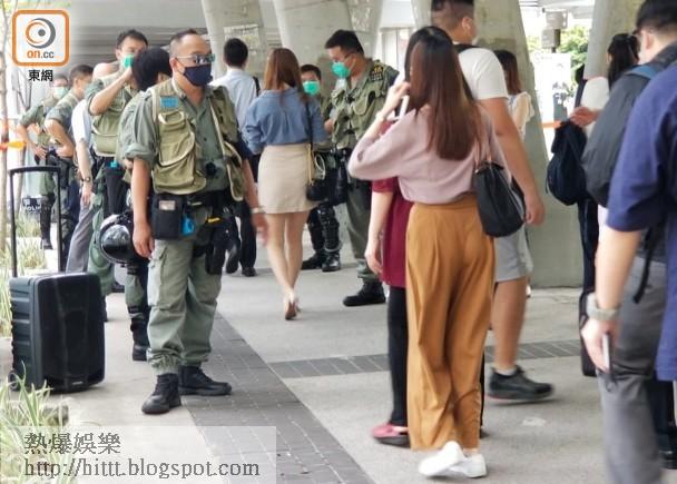 警方今早於立法會附近金鐘一帶加強佈防,海富天橋被封鎖,附近停泊多部警車,所有人途經中信天橋均須出示職員證,警方又要求他們排隊接受檢查。防暴警員在立法會大樓各個出入口戒備,除常見的盾牌等裝備外,更配備手提滅火劑。