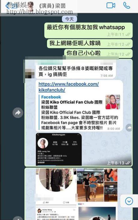 懷疑受騙後,A小姐加入了一個由苦主開設的telegram,裏面羅列好多梁茵疑做傳銷的「證據」,包括梁茵與前男友Marshal合照、參與傳銷活動相片,並流出兩張行內「計數」手寫名單,上面有「Kiko(演員)」名字。去年10月,黃XX在社交網多謝Kiko讓他一齊做生意,而「Leung Yan」回覆指二人經歷過創業的艱辛。