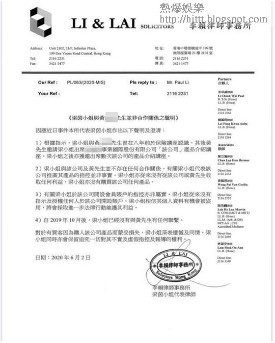 梁茵今日回覆傳媒否認自己有做傳銷,她說:「我有向私隱專員公署求助,但唔涉及刑事案未獲處理,但已經報咗警。如果受害人真係因為我而有損失,點解唔報警求助,而係我去報警求助,呢點好奇怪。」